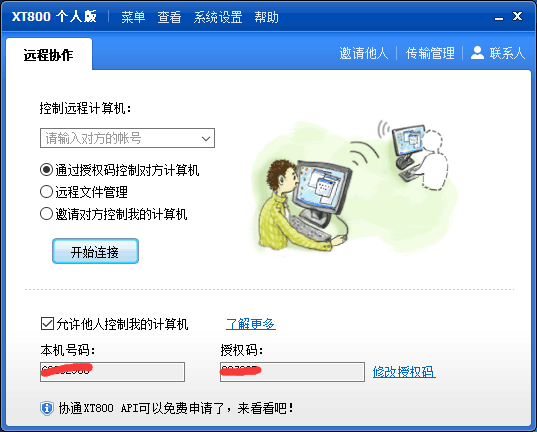 将下图内本机号码和授权码发给对方,对方即可控制本台设备。