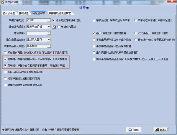 2、进货时可连续扫描串号,并通过单据对库存唯一串号进行控制。如下图: