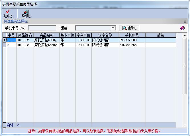 3、销售时可直接选择串号手机进行销售。如下图: