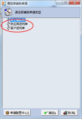 4、可通过辅助单据中的供应商返利单和客户返利单进行返利管理(通过输助单据统计后,用应付减少和应收减少单进行冲账管理)。如下图: