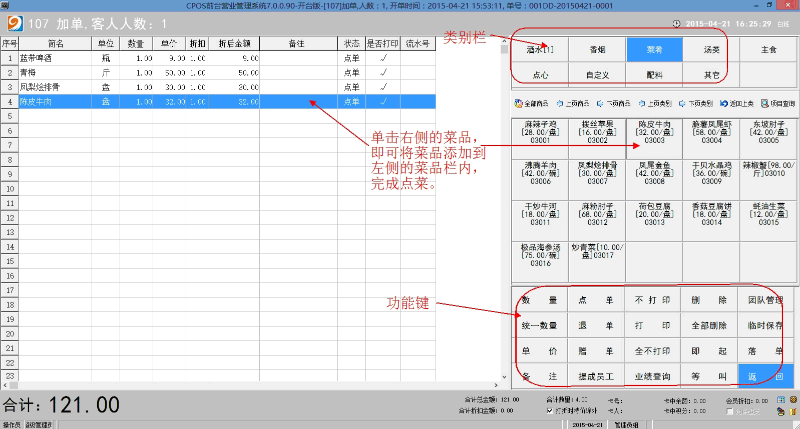 在点单窗口中,右下角处是点单窗口的功能键。可以看到临时保存的按钮。