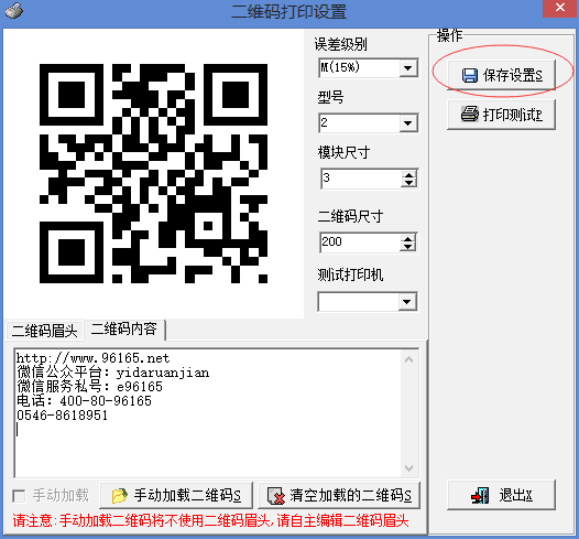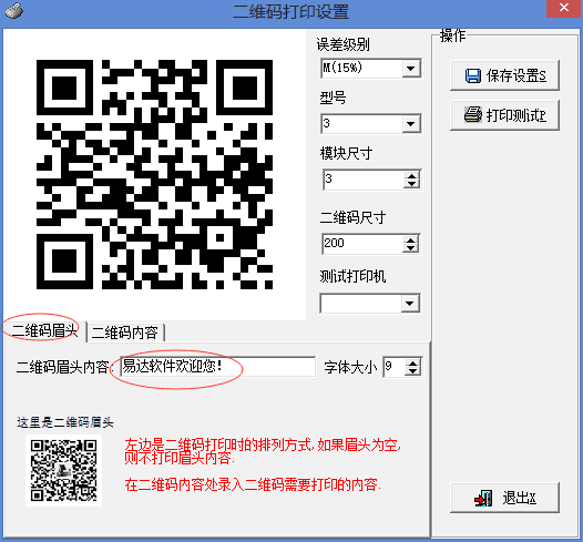 点击二维码打印设置,打开窗口,在二维码眉头页,设置好二维码的眉头内容: