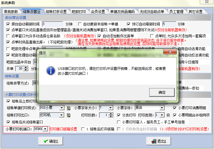 1.先在软件中设置小票打印机端口为USB,如下图: