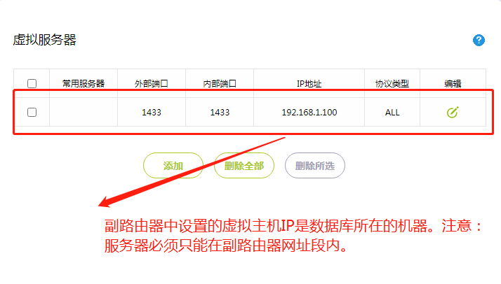 3.在副路由器中设置要转发的机器IP和端口号,如下图: